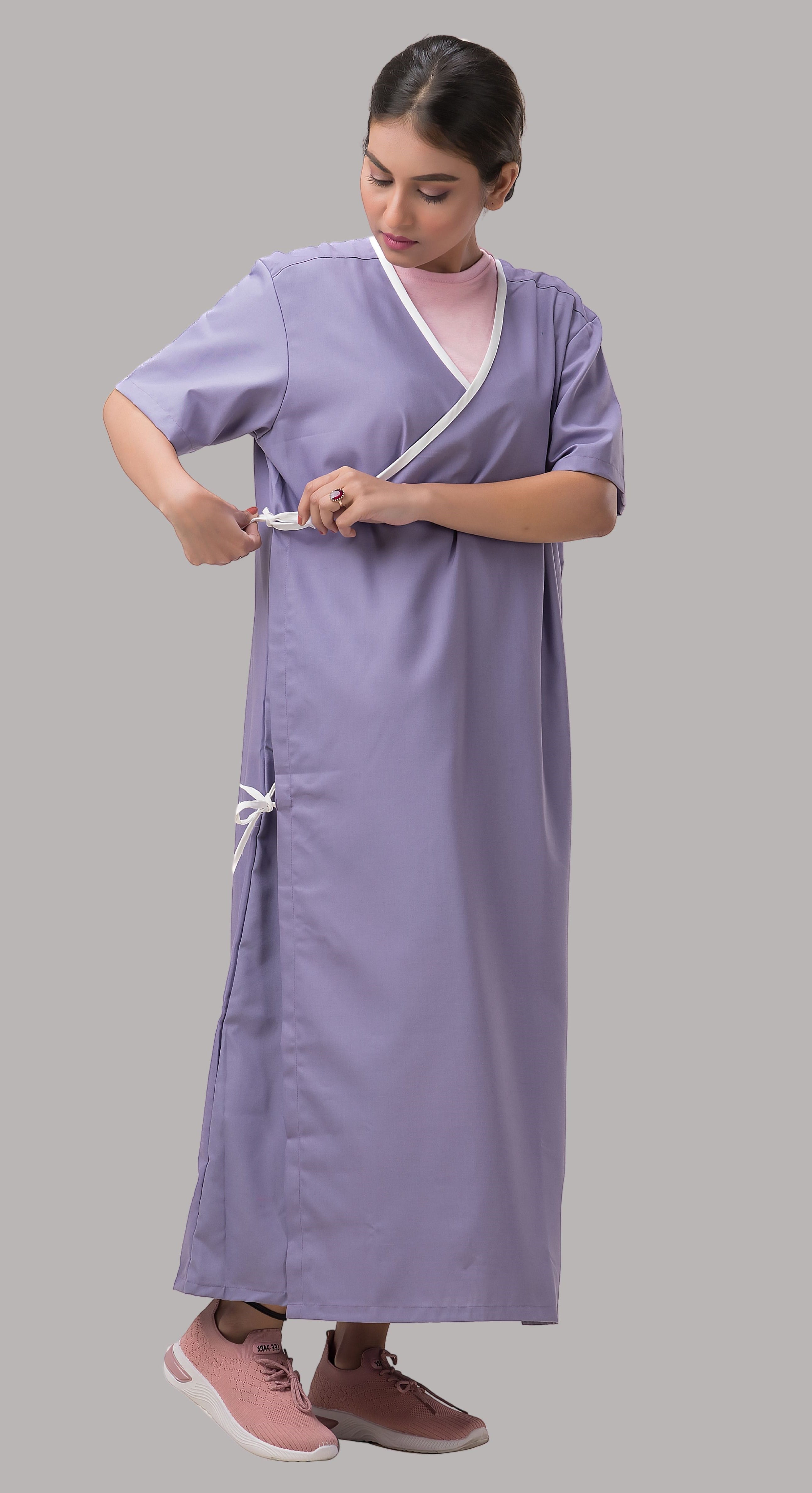 Front Open Gown for Patients - Comfortable & EasyPatient Gown – Front Open Overlap – Plain Purple